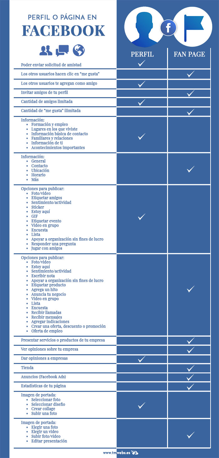 A menudo los usuarios desconocen cuál es la diferencia entre perfil y página de Facebook (también conocida como fan page).